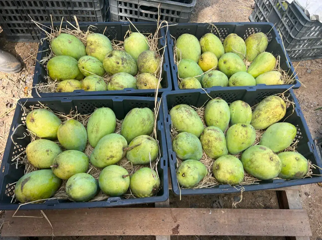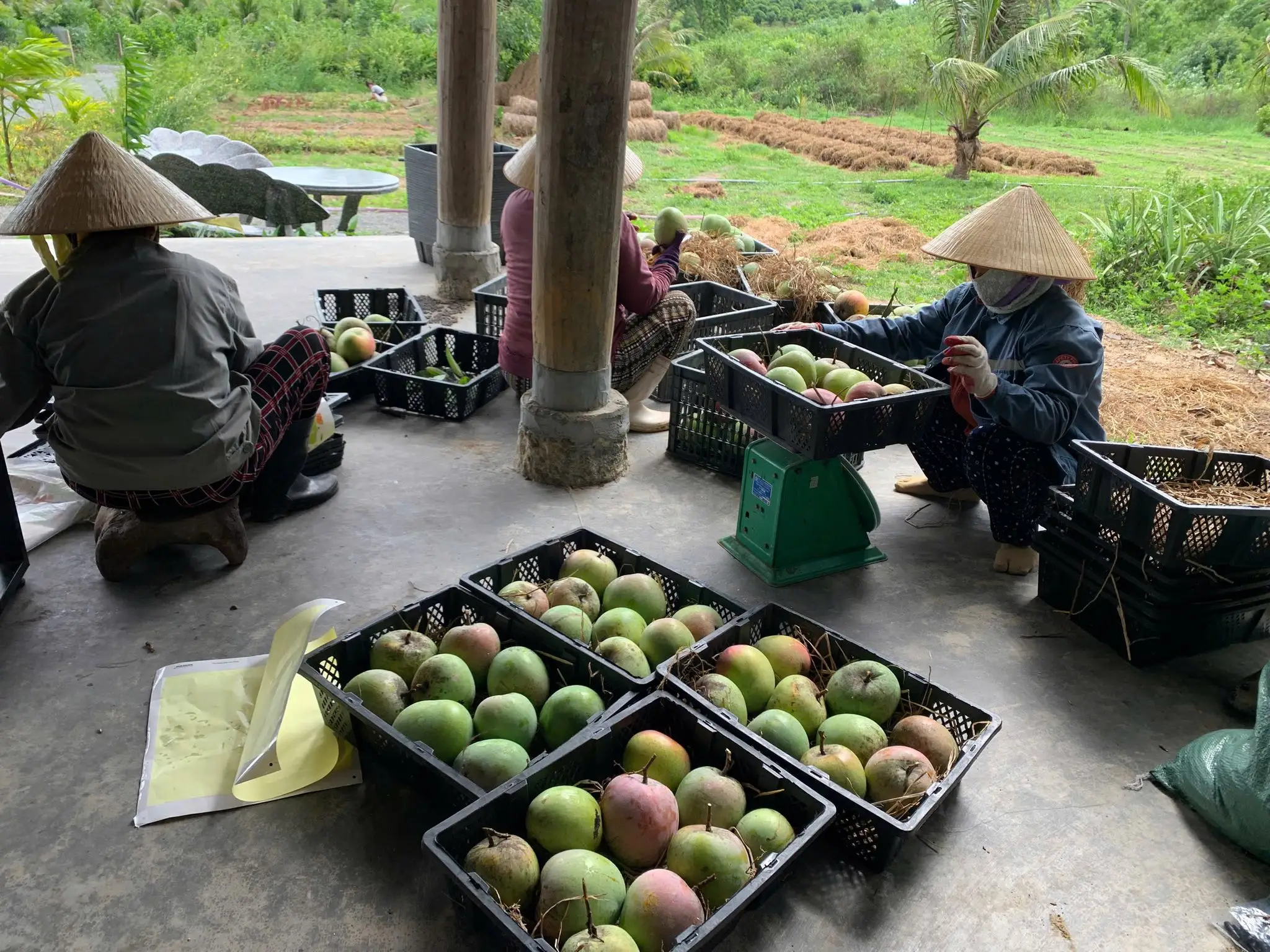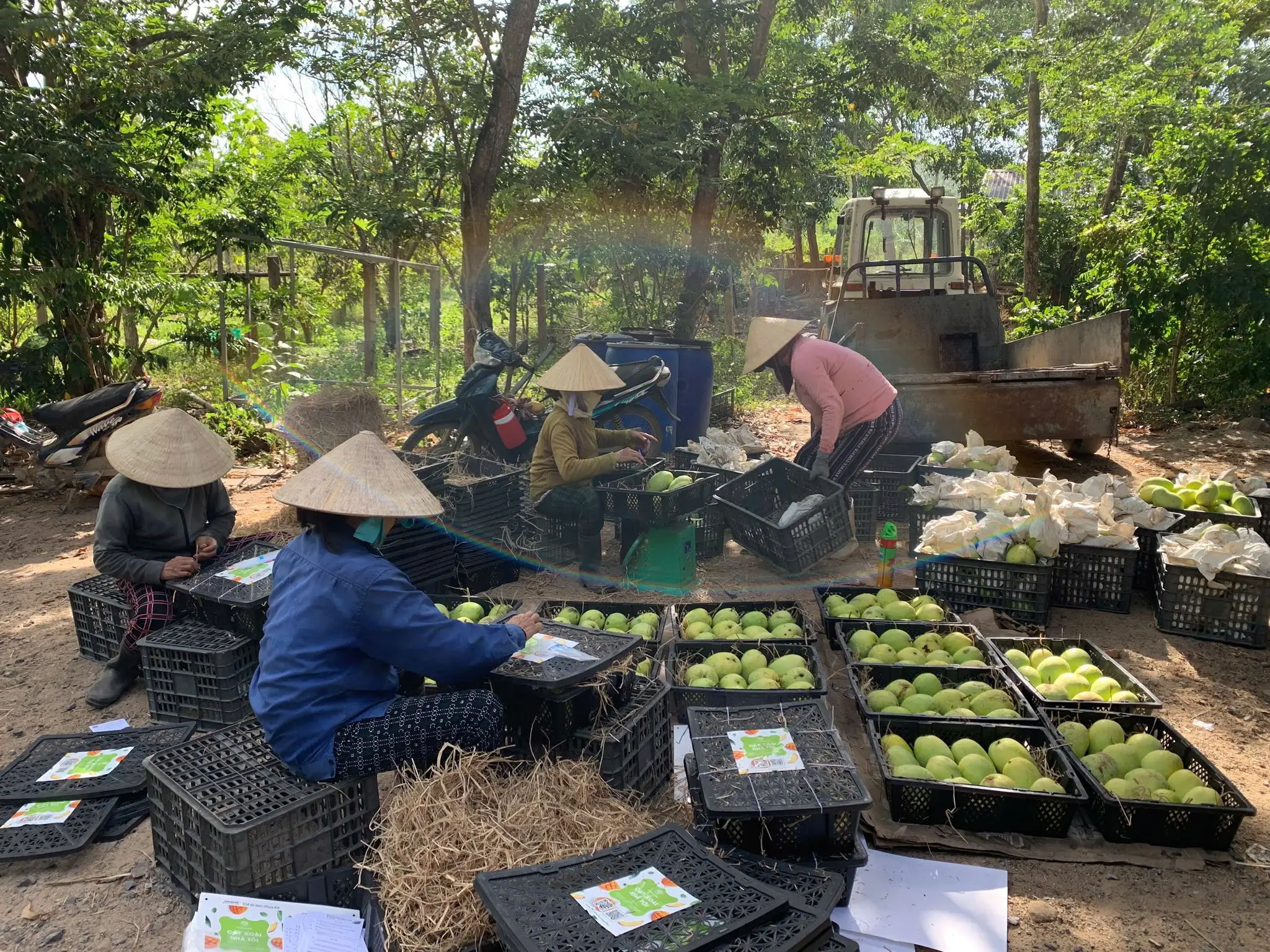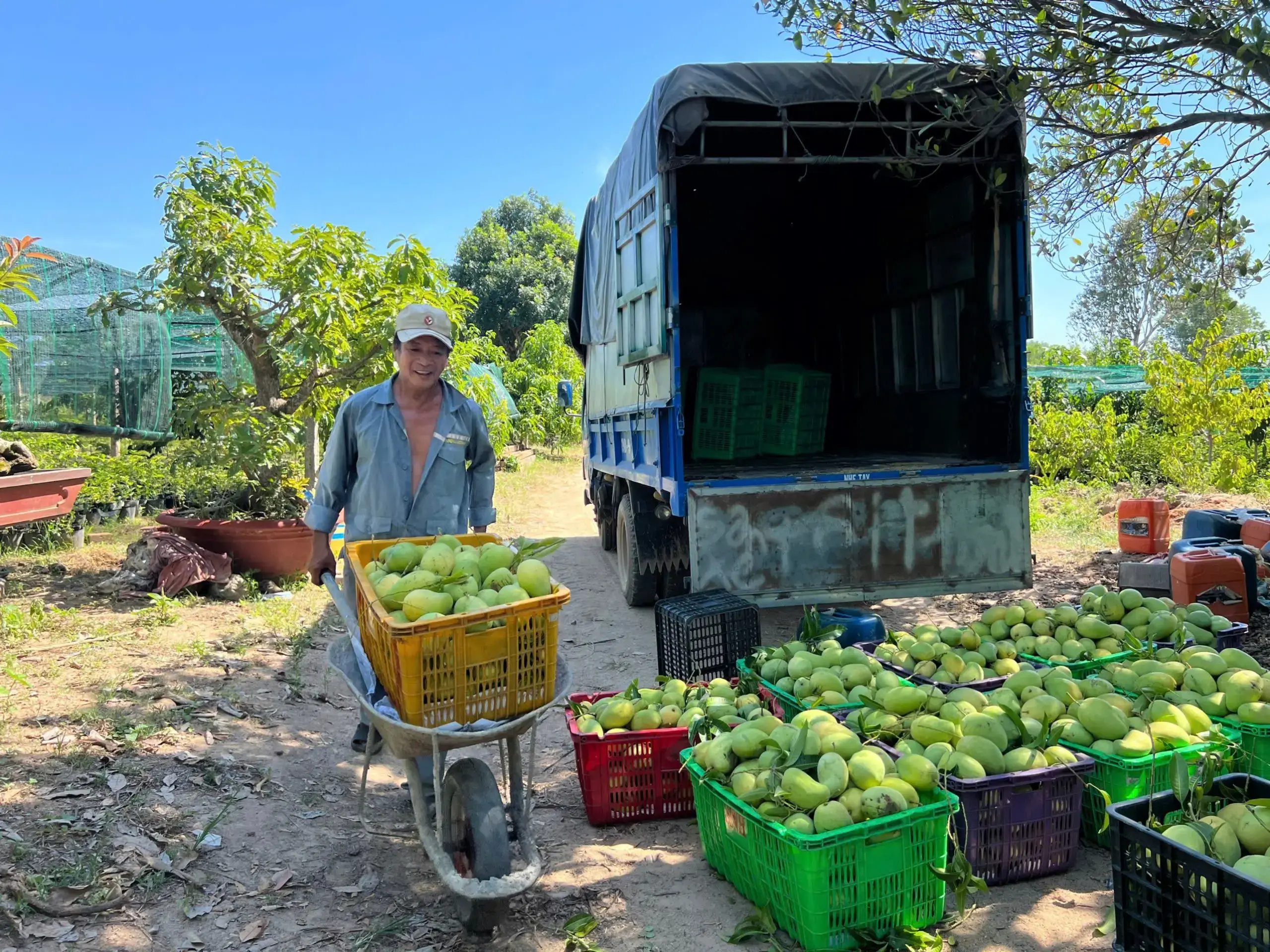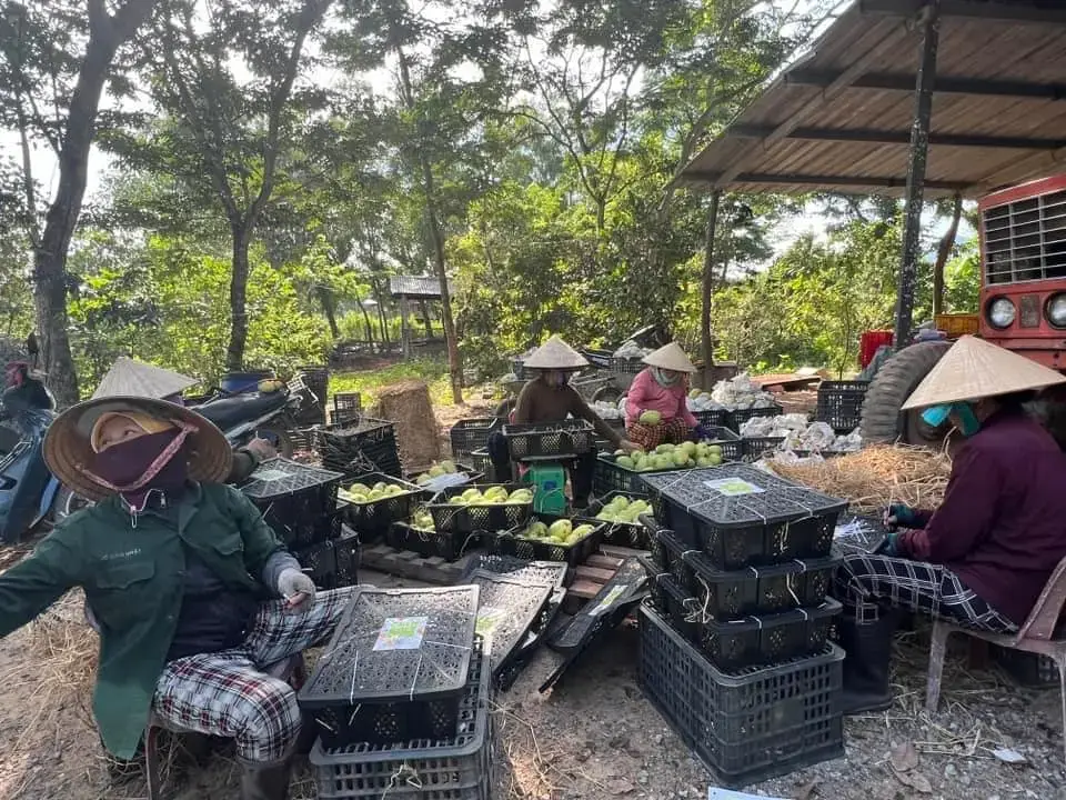 c thấy trên gr đóng thùng lúc xoài còn xanh tím nên khá yên tâm