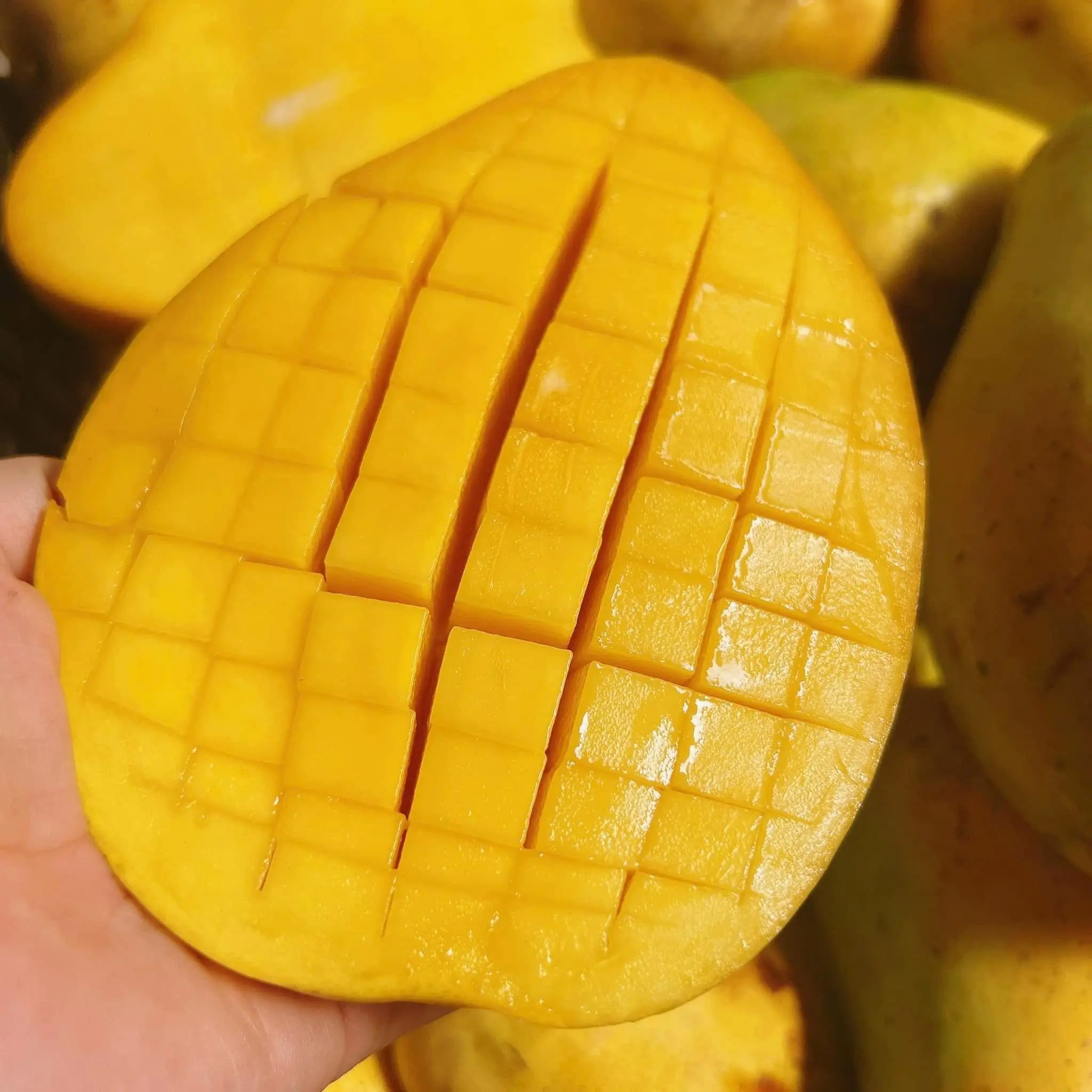 Đợt này trời nóng nên xoài chín nhanh, thành ra xoài gửi đến chị bị đốm. Team đang làm việc lại với vườn để tính lại lịch hái và gửi, để các đợt sau xoài về dễ sử dụng hơn, ăn từ từ hoặc biếu tặng thuận tiện hơn.