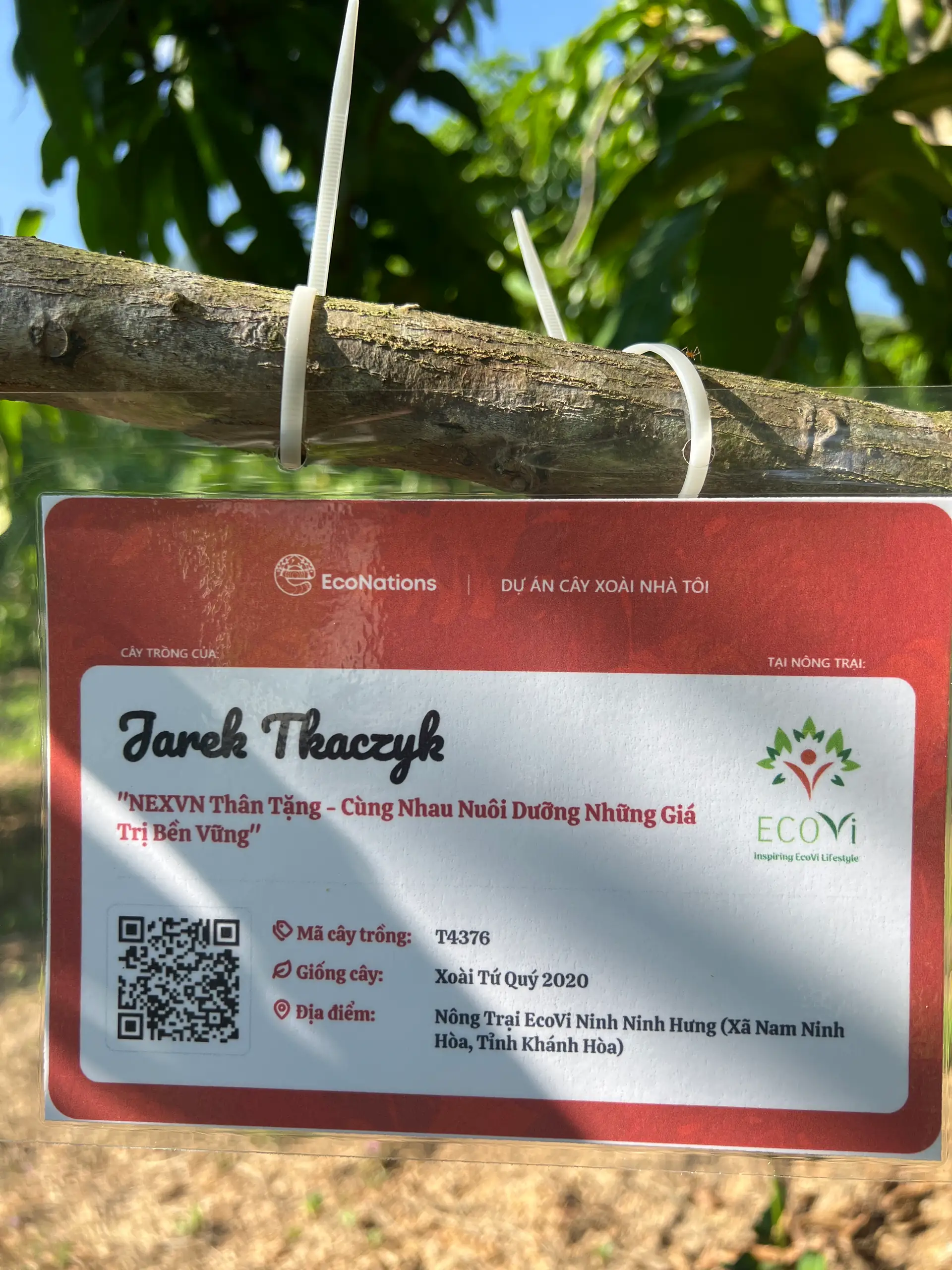 16:50:00Khách hàng Jarek Tkaczyk đã nhận trồng Cây Xoài Nhà Tôi - T4376 (Xoài Tứ Quý 2020)Thời gian nhận trồng: 1 năm (25/03/2026 - 25/03/2027)